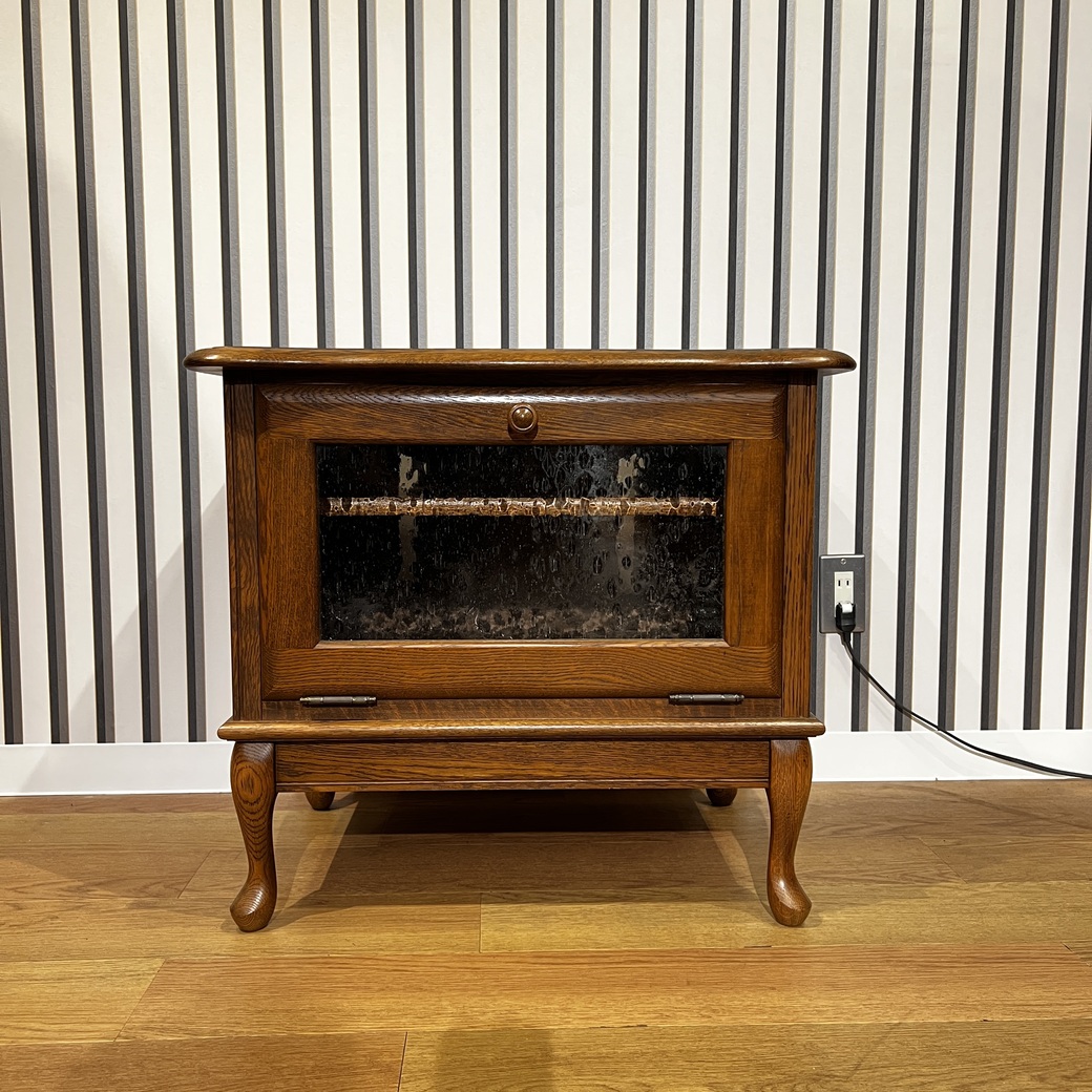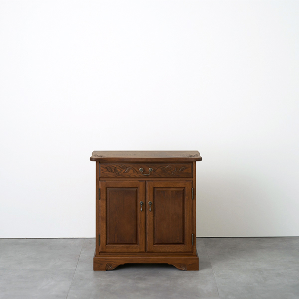 木のつまみが素朴な印象ながら、天板下の装飾やくり棒が程よい重厚感を与えます。